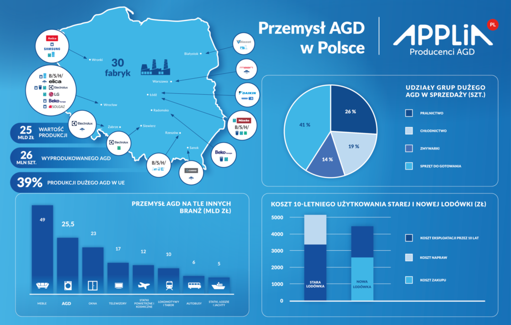 - 26 mln szt. wyprodukowanego sprzętu, w tym 23 mln to duże AGD
