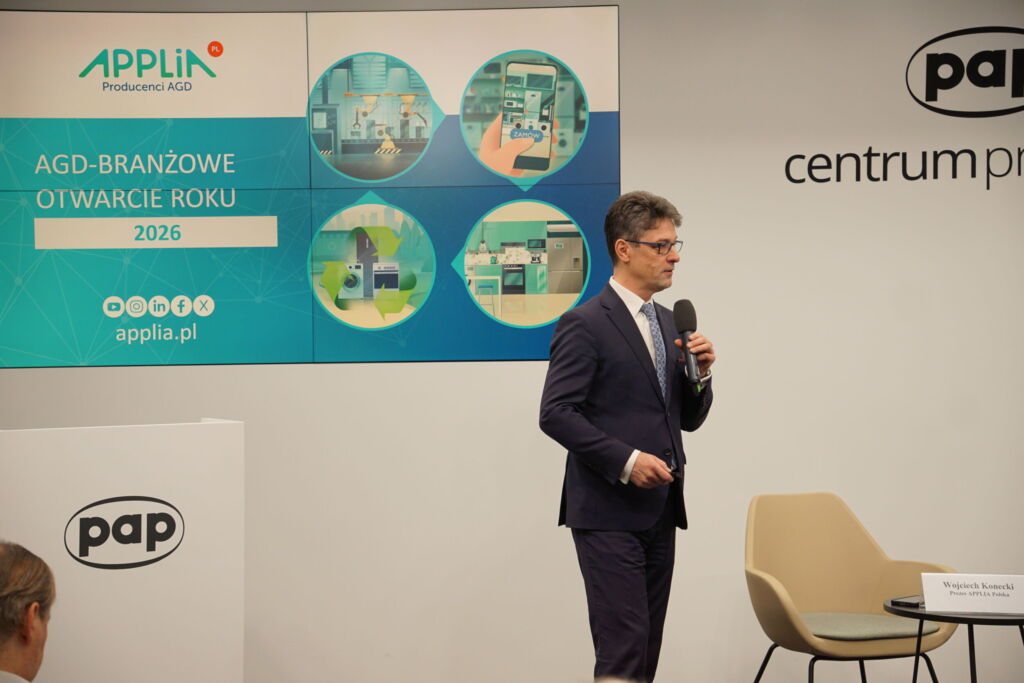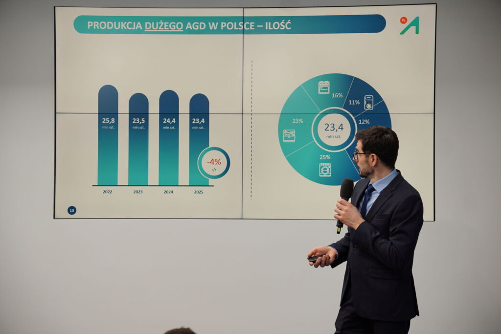 Następnie Wojciech Konecki wraz z Radosławem Majem, Project Managerem APPLIA Polska, podsumowali wyniki sprzedaży i produkcji AGD w 2025 r. oraz opowiedzieli o głównych wyzwaniach stojących przez branżą.